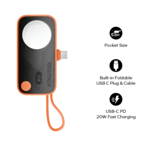 MOMAX 1-Power X Pro Mini⁺ 5000mAh Integrated Foldable USB-C Plug and Built-In USB-C Cable Battery Pack