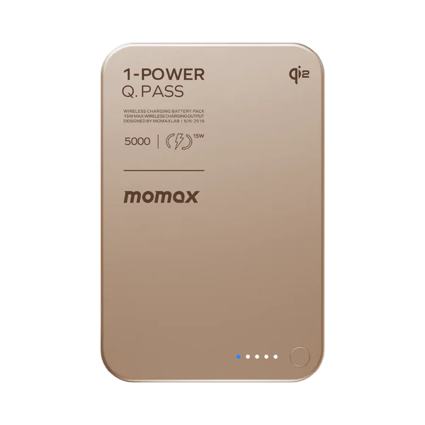 MOMAX 1-Power Q.Pass 5000mAh Qi2 Magnetic Wireless Battery Pack (Desert Titanium)